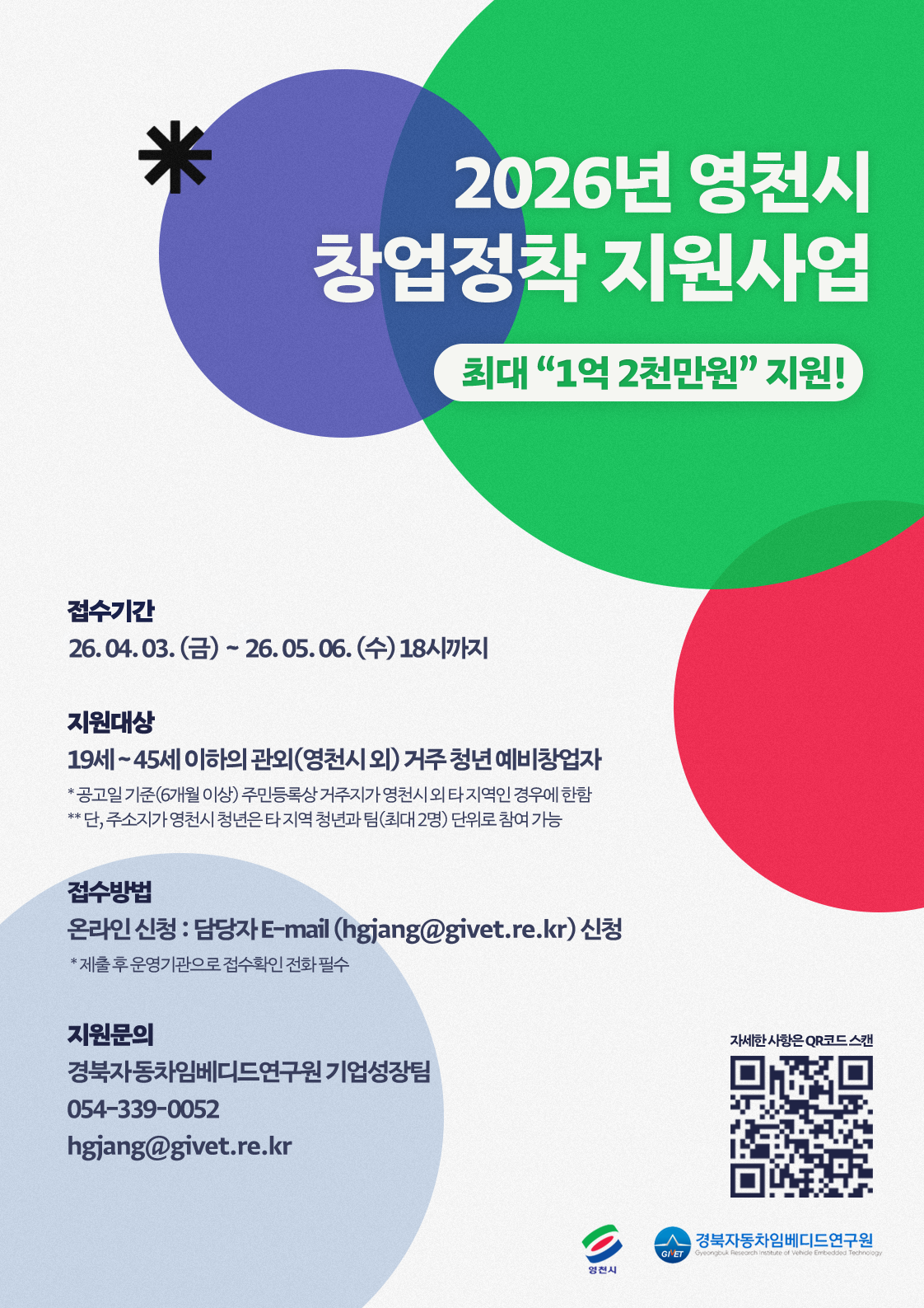 관외(영천시 외) 거주 청년을 대상으로 「2026년 영천시 창업정착 지원사업」 참가자를 모집하고 있습니다.